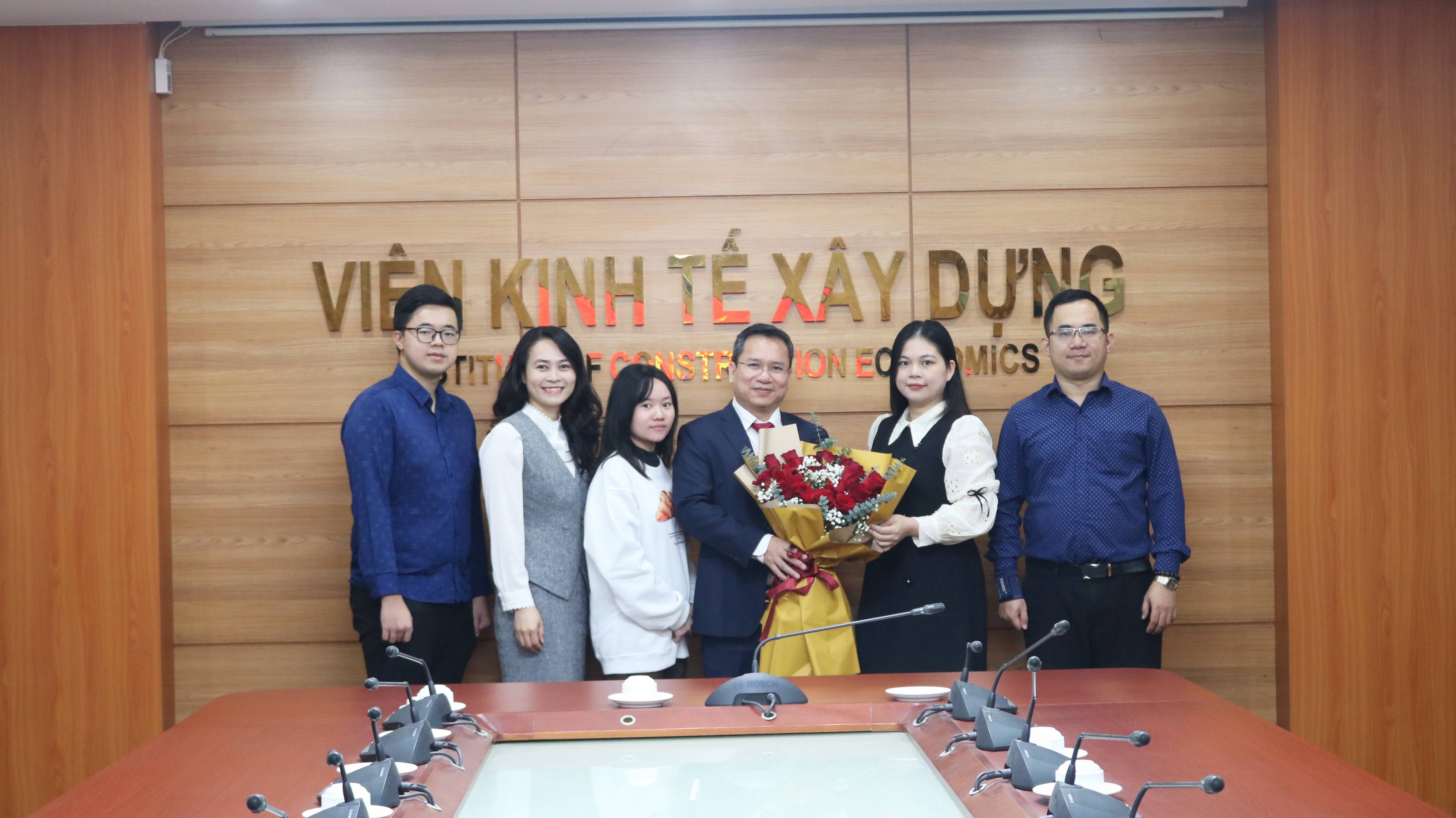 Đồng chí Vũ Thành Trung và Ban Lãnh đạo Viện Kinh tế xây dựng chúc mừng