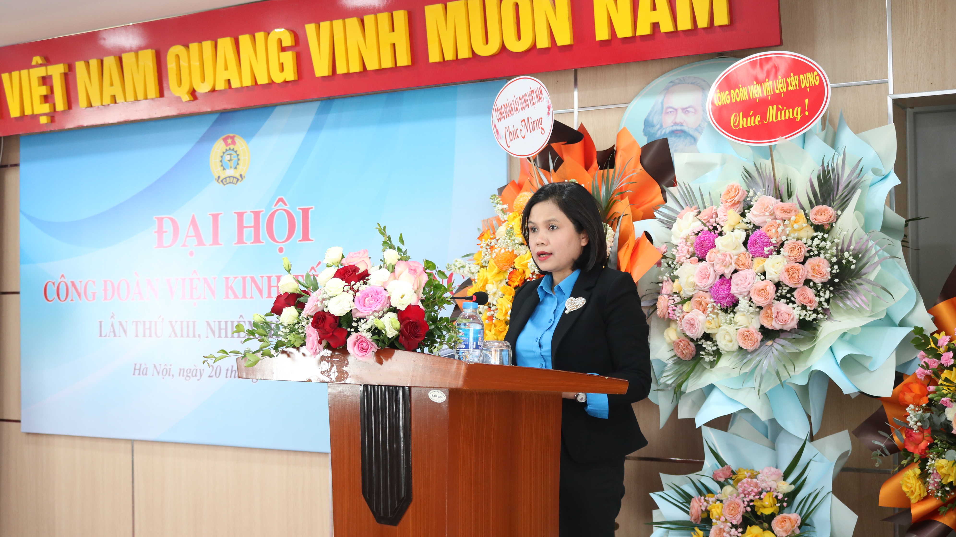 Phát biểu tại Đại hội, bà Âu Thị Định – Phó Chủ tịch Công đoàn Xây dựng Việt Nam đánh giá cao những kết quả mà Công đoàn Viện Kinh tế xây dựng đã được trong nhiệm kỳ vừa qua. Những kết quả đó được ghi nhận bằng các danh hiệu cao quý được Công đoàn cấp trên khen tặng, cụ thể: Bằng khen của BCH Công đoàn Xây dựng Việt Nam năm 2023; Giấy khen của Công đoàn cơ quan Bộ Xây dựng năm 2024. Với niềm tin sâu sắc vào sự nỗ lực, quyết tâm cao của đoàn viên Công đoàn Viện, bà Âu Thị Định tin tưởng Ban Chấp hành Công đoàn Viện Kinh tế xây dựng nhiệm kỳ 2025- 2030 sẽ luôn thể hiện được bản lĩnh, năng động, đoàn kết, sáng tạo, tràn đầy nghị lực và niềm tin, thực hiện đạt và vượt các chỉ tiêu, nhiệm vụ Đại hội đã đề ra.