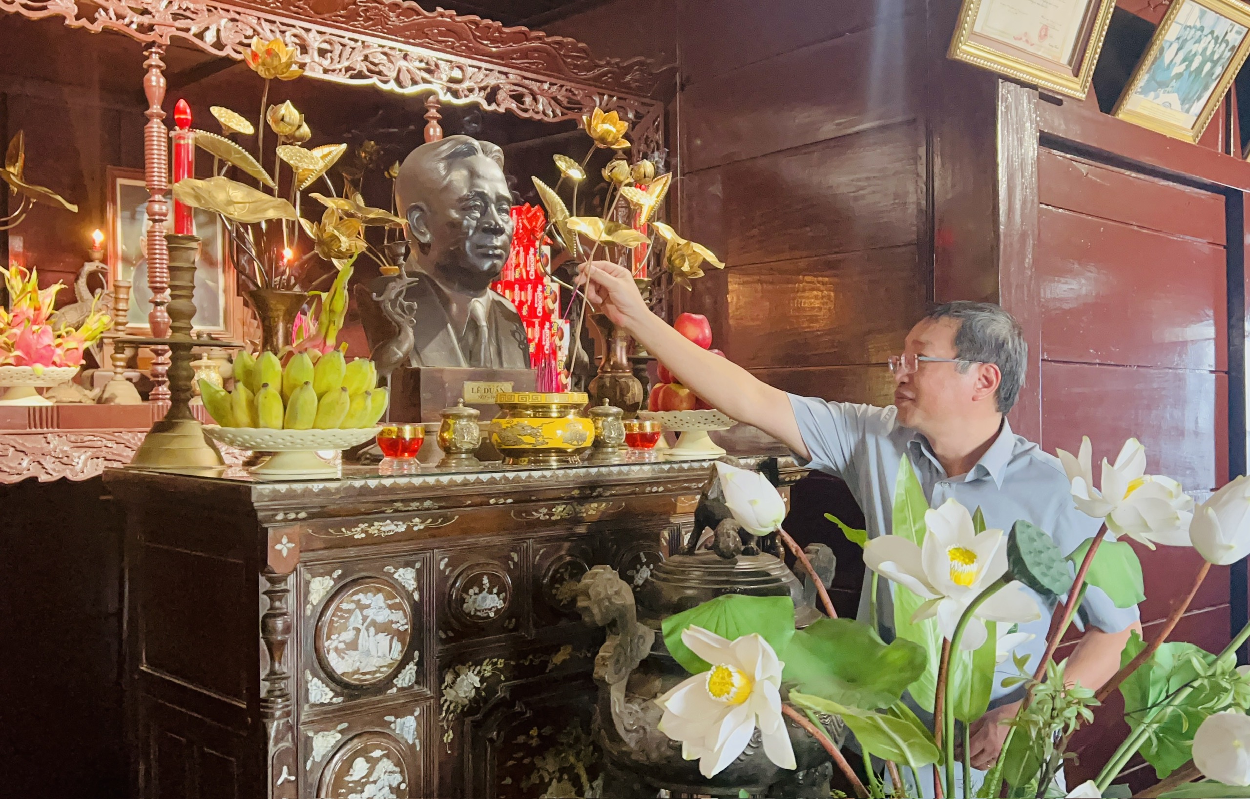 Đồng chí Nguyễn Tấn Vinh – Bí thư Đảng ủy, Viện trưởng Viện Kinh tế xây dựng dâng hương tưởng niệm cố Tổng Bí thư Lê Duẩn