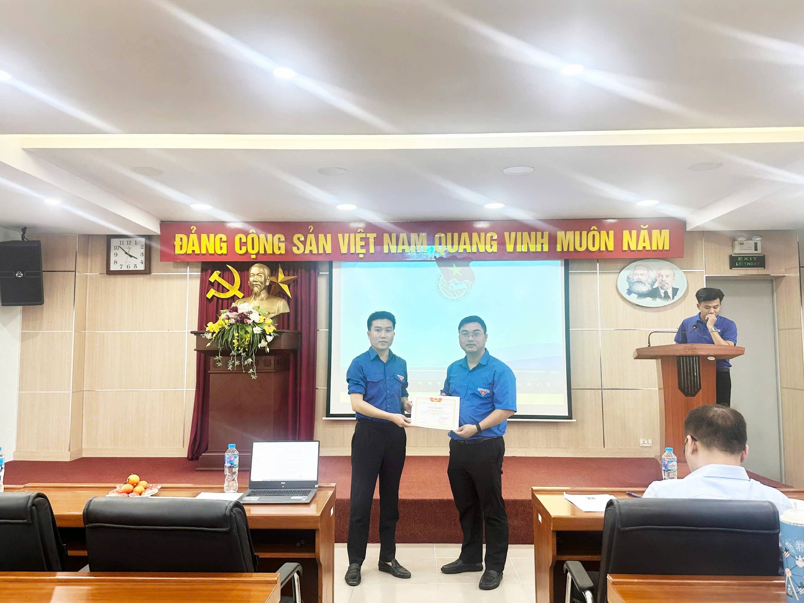 Đồng chí Vũ Minh Thái – Phó Bí thư chuyên trách Đoàn Thanh niên Bộ Xây dựng trao Giấy khen cho tập thể Chi đoàn Viện Kinh tế xây dựng vì đã có thành tích hoàn thành tốt nhiệm vụ năm 2025