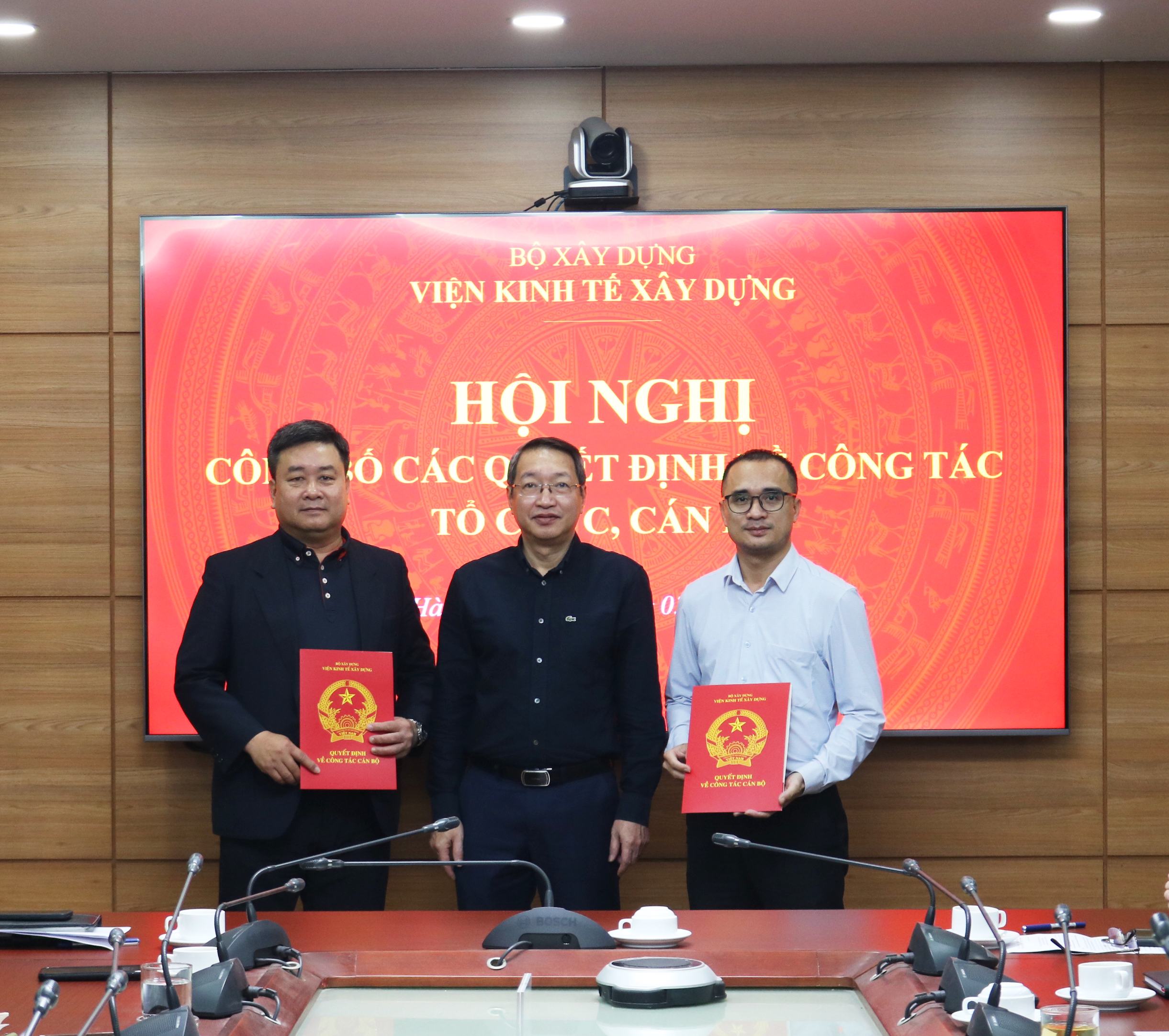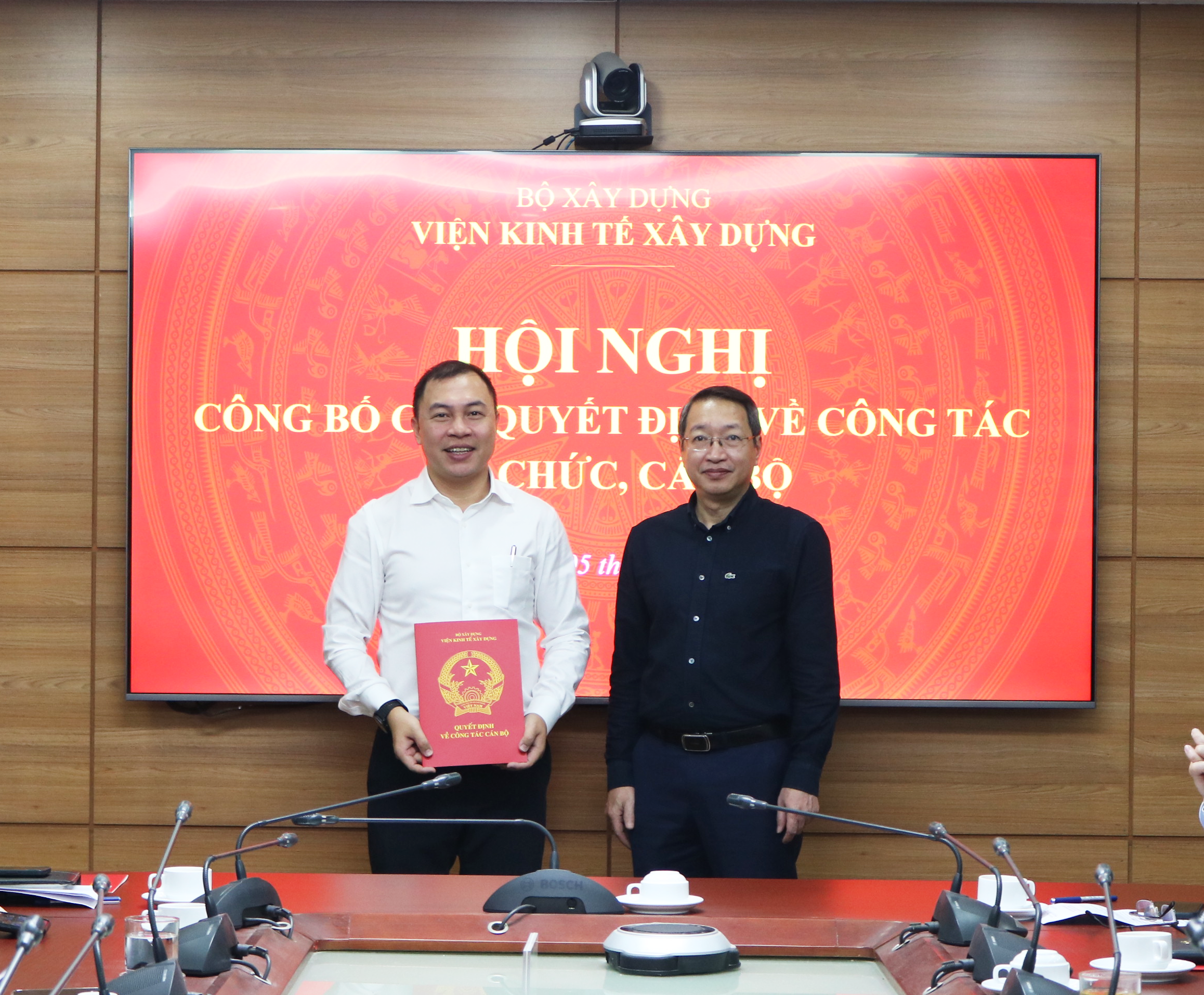 Đồng chí Nguyễn Tấn Vinh – Bí thư Đảng ủy, Viện trưởng Viện Kinh tế xây dựng trao Quyết định bổ nhiệm lãnh đạo Phòng Tổ chức – Hành chính