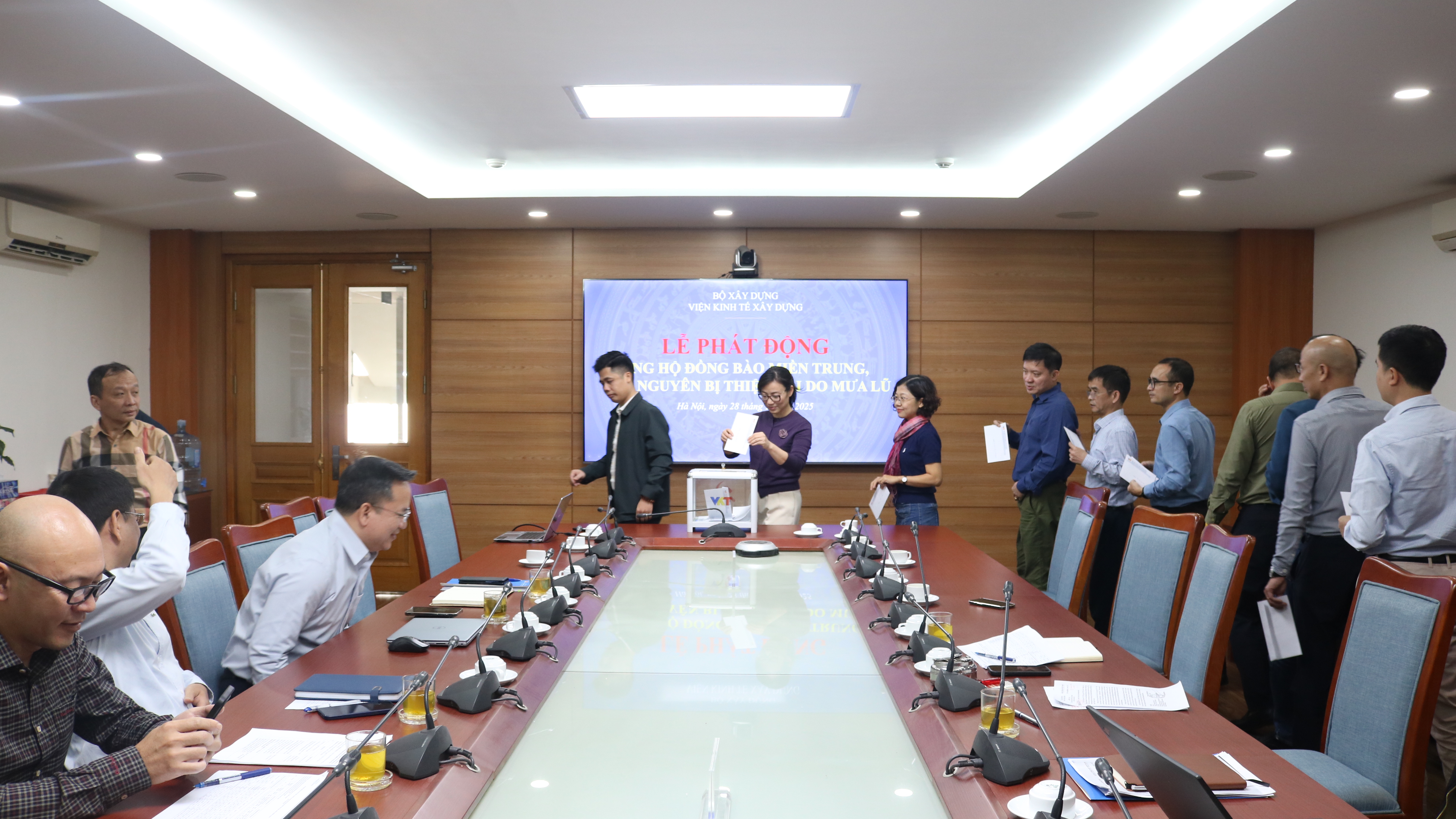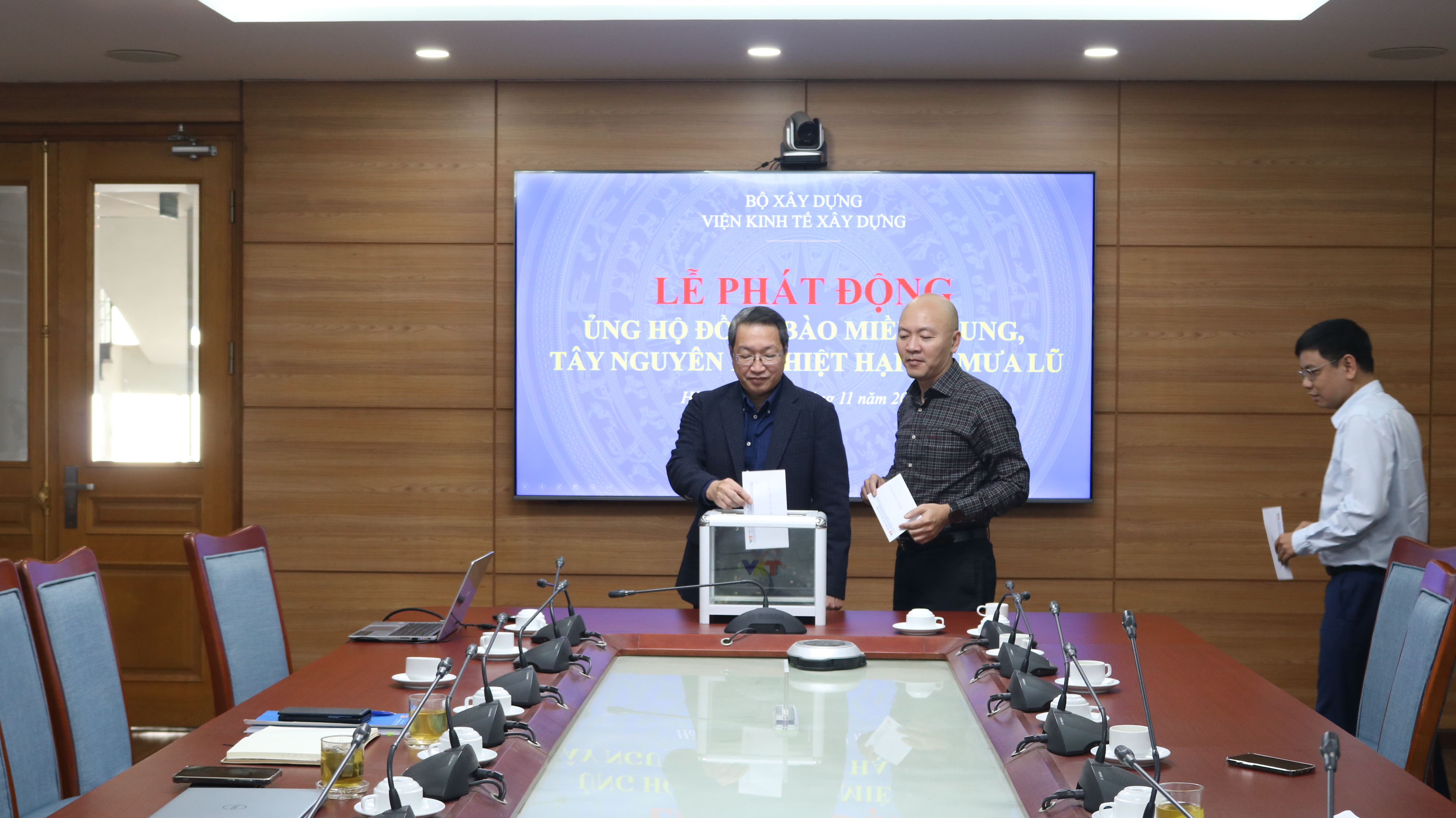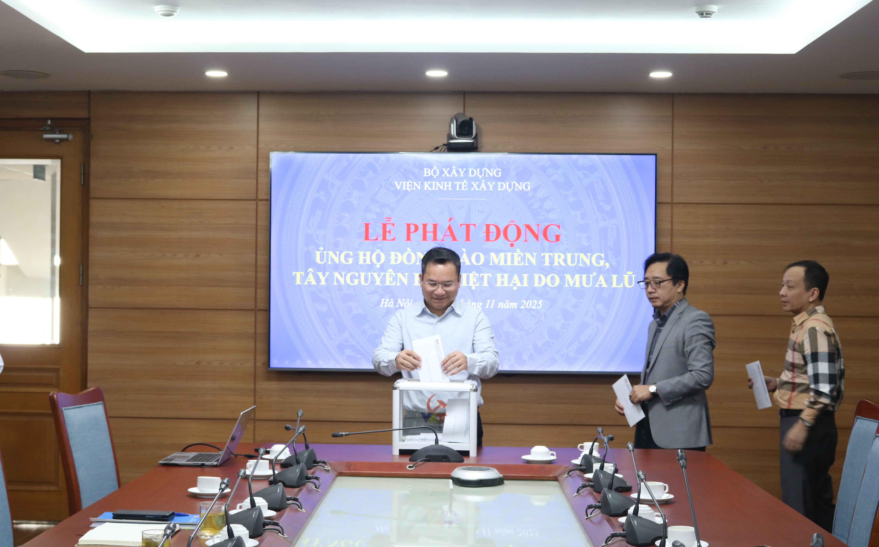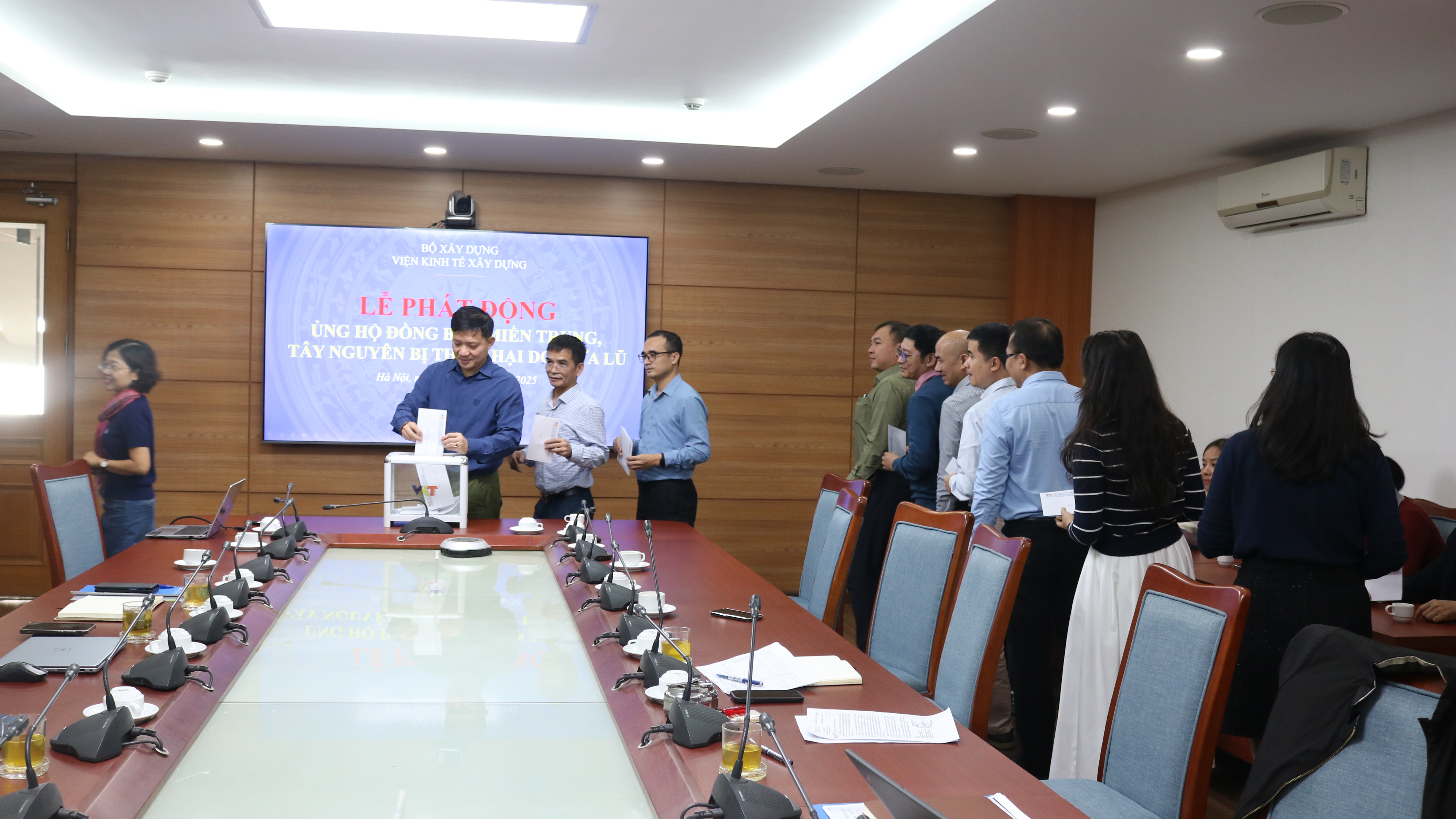 Trước những thiệt hại nặng nề do mưa lũ gây ra tại các tỉnh miền Trung và Tây Nguyên, hưởng ứng lời kêu gọi của của Thủ tướng Chính phủ, Đoàn Chủ tịch Ủy ban Trung ương Mặt trận tổ quốc Việt Nam và Trung ương Hội Chữ thập đỏ Việt Nam, sáng ngày 28/11/2025, Viện Kinh tế xây dựng đã phát động viên chức, người lao động quyên góp ủng hộ đồng bào vùng lũ, giúp bà con sớm vượt qua khó khăn, ổn định cuộc sống.